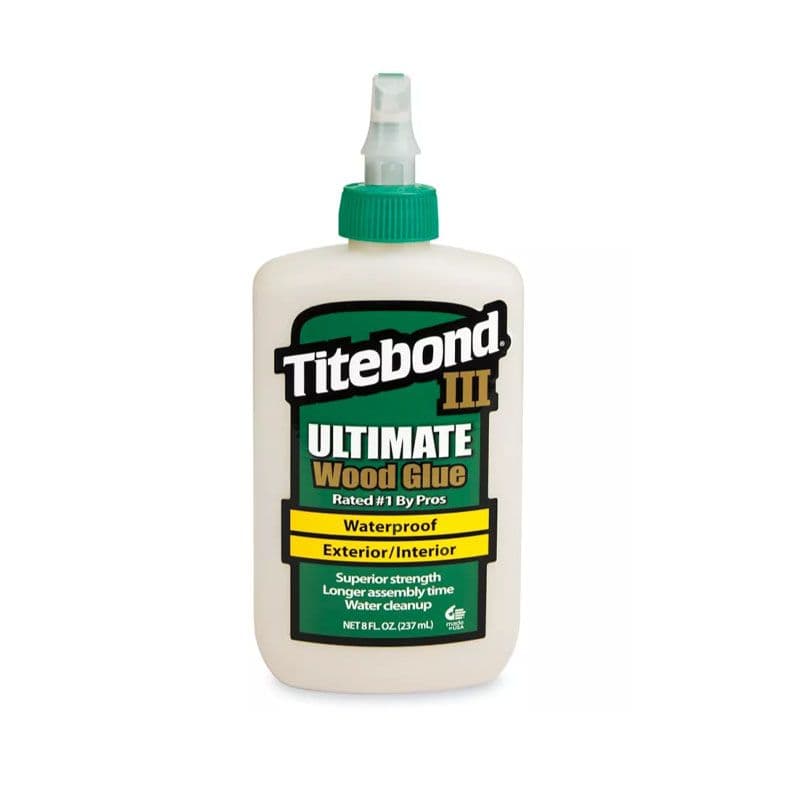 An advanced, waterproof wood glue that pairs superior strength with extended open time for stress-free assembly. Exceeding ANSI Type I water-resistance, Titebond III is suited to indoor and outdoor projects alike, offering excellent heat resistance, a forgiving chalk temperature for colder shops, and consistent performance across species. It sands beautifully, works well with most finishes, and cleans up with water before cure—perfect for fine furniture, exterior joinery, and heavy-duty applications where longevity and alignment time are both essential.